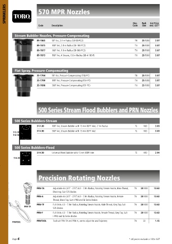 Code Description SPRINKLERS Disc. Pack List Price Code 500 Series Stream Flood Bubblers and PRN Nozzles