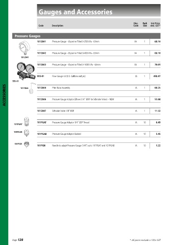 Pressure Gauges Disc. Pack List Price