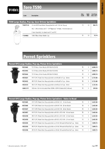 Perrot VP3 Large Radius, Pop-up, Piston Drive Sprinklers - Valve In Head TR 1 3500.00