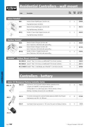 JRDC-4 Four station, dual programme waterproof battery operated controller IC 20 225.00 • Tes t pr og Latching Solenoid in a counter display carton. Features calendar or interval
