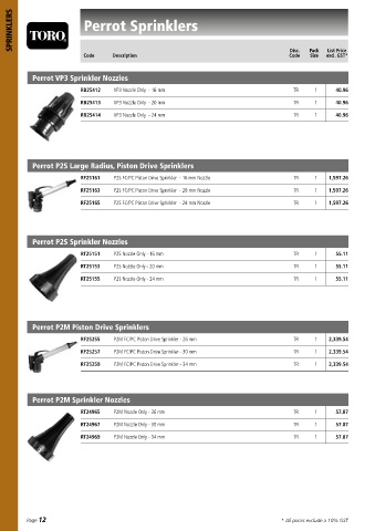Perrot P2S Large Radius, Piston Drive Sprinklers