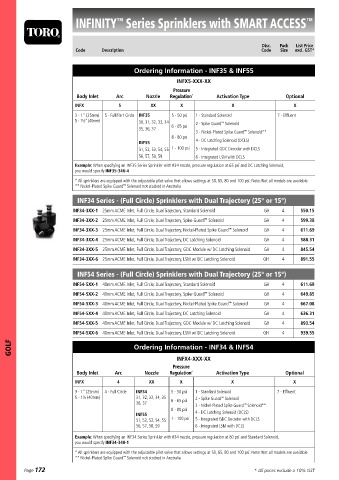 Example: When specifying an INF35 Series Sprinkler with #34 nozzle, pressure regulation at 65 psi and DC Latching Solenoid,