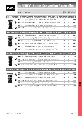 INF54-59 Conversion Assembly, INF54 59 Nozzle, 40mm, FC, Dual Trajectory GH 5 224.00 GOLF