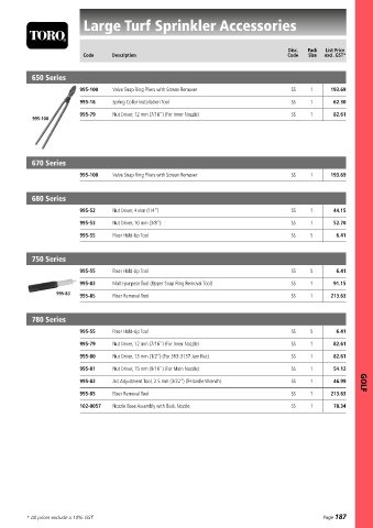 995-81 Nut Driver, 15 mm ( /16”) (For Main Nozzle) SS 1 1 54.12 GOLF