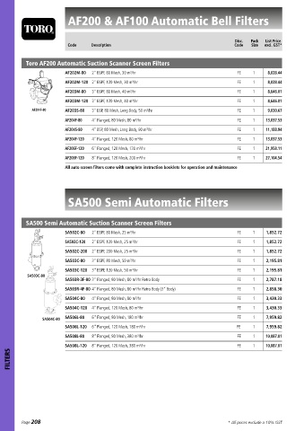 Toro AF200 Automatic Suction Scanner Screen Filters