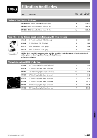 Toro Filter Media (Pricing based upon shipment with Filter Systems)