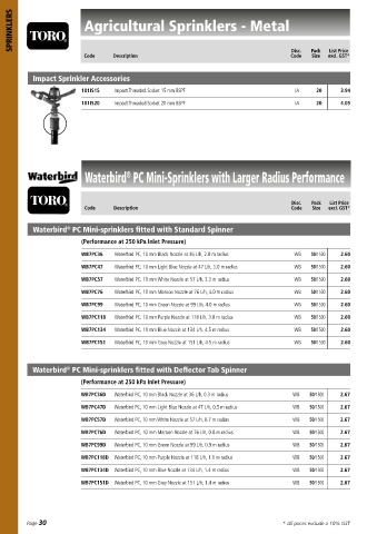 Page 30 1014277 Waterbird VI 10 mm, Yellow Nozzle at 192 L/h * All prices exclude a 10% GST