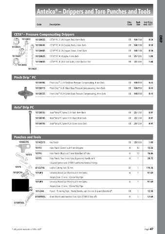 CETA – Pressure Compensating Drippers Disc. Pa Pack L L L List Price