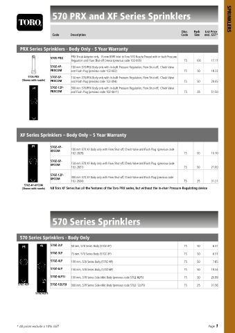 570Z-6LPS N.B. – Toro XF Series has all the features of the Toro PRX Series, but without the in-riser pressure regulating device.