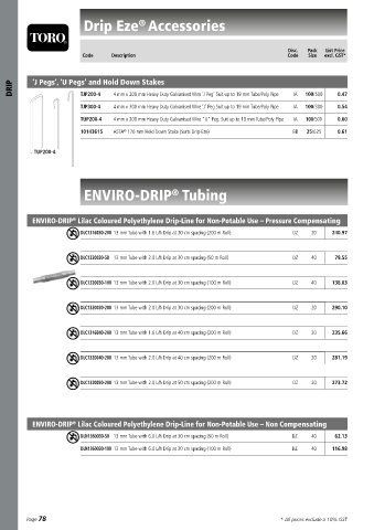DRIP DRIP DRIP ‘J Pegs’, ‘U Pegs’ and Hold Down Stakes lv a n is ed Wire ‘J Peg ’.‘J Peg’ Suit up to 19 mm Tube/Poly Pipe IA 100/500 0.48