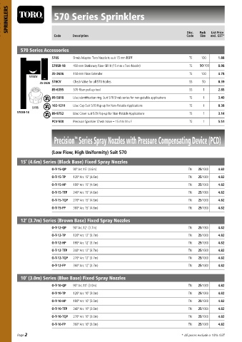 570Z-12LPS 570 Series Accessories 570 Series Sprinklers – Body Only 8.00 Disc. Pack List Price Code Pack List Price