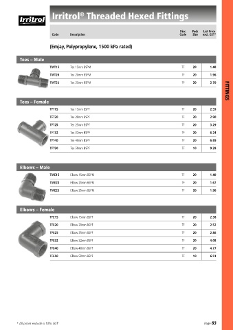 * All prices exclude a 10% GST Page 101