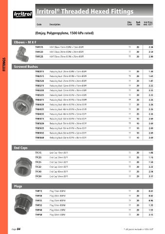 Page 84 2 * * * * * All prices exclude a 10% GST
