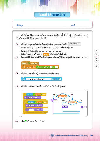 2 เขียนสคริปต์ ก�าหนดค่าให้กับตัวแปร guess ด้วยการให้โปรแกรมสุ่มตัวเลข ระหว่าง 1 - 10 กิจกรรมที่ 8 • เงื่อนไขและตัวแปร