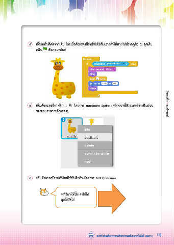 5 เพ่มตัวละครยีราฟอีก 1 ตัว โดยการ duplicate Sprite (คลิกขวาท่ตัวละครยีราฟในส่วน กิจกรรมที่ 9 • เกมสร้างสรรค์