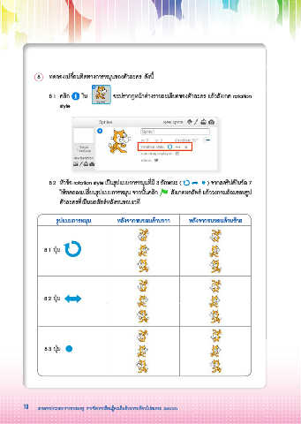 ให้ทดลองเปลี่ยนรูปแบบการหมุน จากน้นคลิก สังเกตผลลัพธ์ แล้ววงกลมล้อมรอบรูป