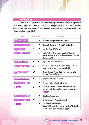 กลุ่มบล็อก Sound ท�างานเกี่ยวกับการแสดงเสียงต่างๆ ซึ่งอาจเป็นเสียงจากไฟล์ที่มีอยู่ หรือไฟล์