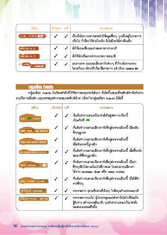 กลุ่มบล็อก Events มีบล็อกค�าสั่งที่ใช้จัดการเหตุการณ์ต่างๆ ที่เกิดขึ้นขณะที่สคริปต์ก�าลังท�างาน
