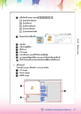 โปรเจกต์ใน Scratch มีโครงสร้าง 3 ส่วนประกอบด้วย