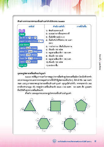 Scratch จะใชมมภายนอกในการหมนปากกาเพอสรางรปหลายเหลยมใดๆ โดยมหลกการวา