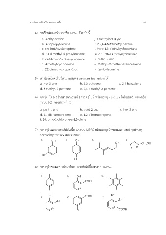 4) จงเขียนโครงสร้างจากชื่อ IUPAC ดังต่อไปนี้
