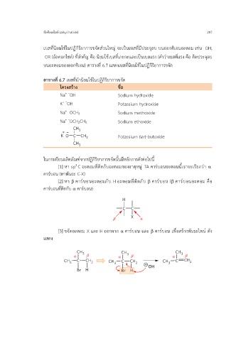 บนอะตอมของออกซเจน) ตารางที่ 6.7 แสดงเบสที่นิยมใช้ในปฏิกิริยาการขจัด