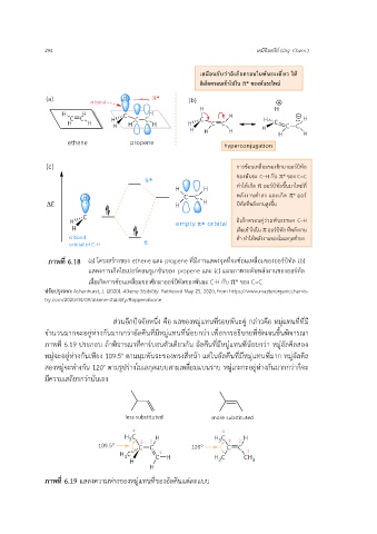 ภาพที่ 6.18 (a) โครงสร้างของ ethene และ propene ที่มีการแสดงจุดที่จะซ้อนเหลื่อมของออร์บิทัล (b)