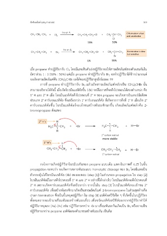 กลไกการเกิดปฏิกิริยาโบรมิเนชันของ propane แบบเต็ม แสดงในภาพที่ 6.25 ในขั้น