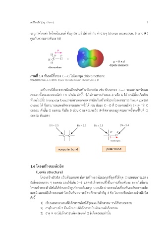 ภาพที่ 1.4 พันธะมีขั้วของ C—Cl ในโมเลกุล chloromethane