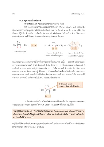 methylbutane การที่ HBr เข้าเติมที่อัลคีนอย่างจำเพาะเจาะจงที่ H อะตอมจะเข้าที่ C อะตอมที่มี