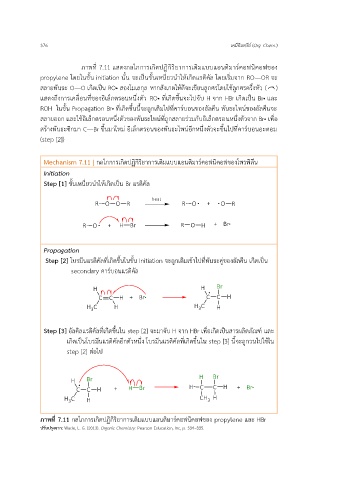 ภาพที่ 7.11 กลไกการเกิดปฏิกิริยาการเติมแบบแอนติมาร์คอฟนิคอฟของ propylene และ HBr
