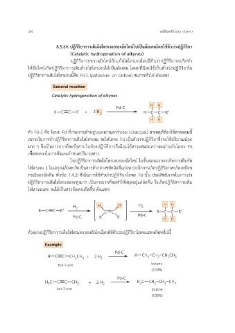 8.5.6A ปฏิกิริยาการเติมไฮโดรเจนของอัลไคน์ไปเป็นอัลเคนโดยใช้ตัวเร่งปฏิกิริยา