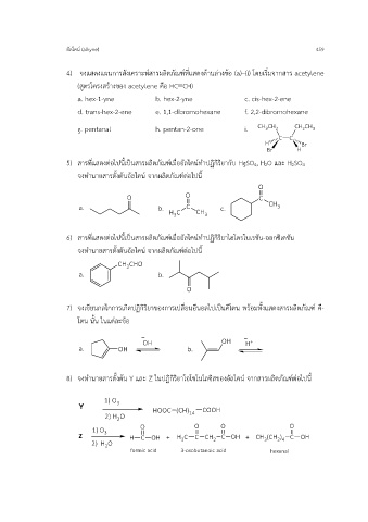 8) จงทำนายสารตั้งต้น Y และ Z ในปฏิกิริยาโอโซโนไลซิสของอัลไคน์ จากสารผลิตภัณฑ์ต่อไปนี้