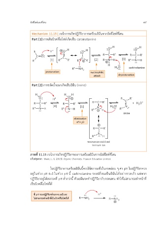 ภาพที่ 11.15 กลไกการเกิดปฏิกิริยาของการเตรียมอิมีนจากอัลดีไฮด์คีโตน