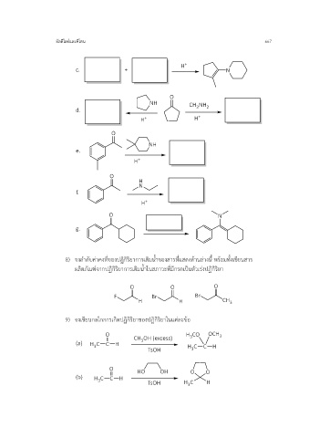 อัลดีไฮด์และคีโตน 667 8) จงลำดับค่าคงที่ของปฏิกิริยาการเติมน้ำของสารที่แสดงด้านล่างนี้ พร้อมทั้งเขียนสาร ผลิตภัณฑ์จากปฏิกิริยาการเติมน้ำในสภาวะที่มีกรดเป็นตัวเร่งปฏิกิริยา 9) จงเขียนกลไกการเกิดปฏิกิริยาของปฏิกิริยาในแต่ละข้อ