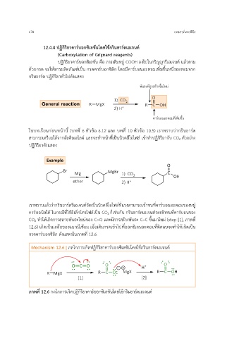 ภาพที่ 12.6 กลไกการเกิดปฏิกิริยาคาร์บอกซิเลชันโดยใช้กรินยาร์ดเอเจนต์