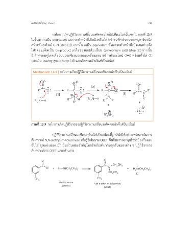 ภาพที่ 13.9 กลไกการเกิดปฏิกิริยาของปฏิกิริยาการเปลี่ยนแอซิดคลอไรด์ไปเป็นเอไมด์