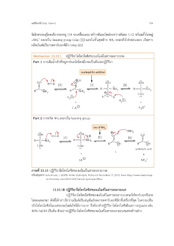Mechanism 13.15 | ปฏิกิริยาไฮโดรไลซิสของเอไมด์ในสารละลายกรด