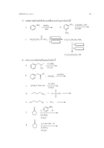 เคมีอินทรีย์ (Org. Chem.) 821 ์ 7) จงเติมสารผลิตภัณฑหรือรีเอเจนต์ที่เหมาะสมในแต่ละข้อต่อไปนี้ 8) จงทำนายสารผลิตภัณฑ์ในแต่ละข้อต่อไปนี้