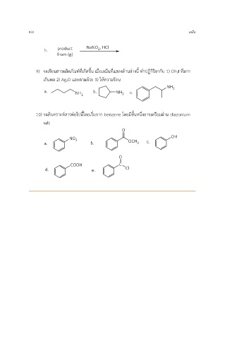 822 เอมีน 9) จงเขียนสารผลิตภัณฑ์ที่เกิดขน เมื่อเอมีนที่แสดงด้านล่างนี้ ทำปฏิกิริยากับ 1) CH3I ที่มาก ึ้ เกินพอ 2) Ag2O และตามด้วย 3) ให้ความร้อน 10) จงสังเคราะห์สารต่อไปนี้โดยเริ่มจาก benzene โดยมีขั้นหนึ่งอาจเตรียมผ่าน diazonium salt