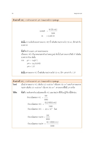 ตัวอย่างที่ 3.9 | การคำนวณหาค่า pH ก่อนและหลังจากจุดสมมูล