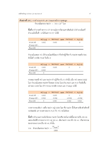 โมล จำนวนโมลของ NaOH จึงลดลง 0.002 โมล ส่วน NaCl และ H2O จึงเพิ่มขึ้น