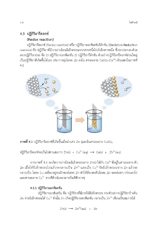 ภาพที่ 4.1 ปฏิกิริยารีดอกซ์ที่เกิดขึ้นเมื่อนำแท่ง Zn จุ่มลงในสารละลาย CuSO4