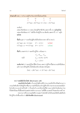 ขั้นที่ 2 ดูค่า E◦ ของครึ่งปฏิกิริยาที่เกี่ยวข้องจากตารางที่ 4.2 พบว่า