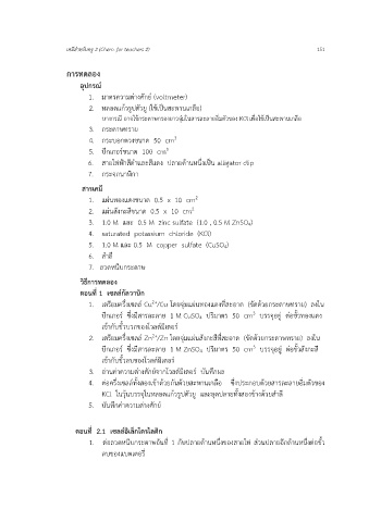 1. เตรียมครึ่งเซลล์ Cu /Cu โดยจุ่มแผ่นทองแดงที่สะอาด (ขัดด้วยกระดาษทราย) ลงใน