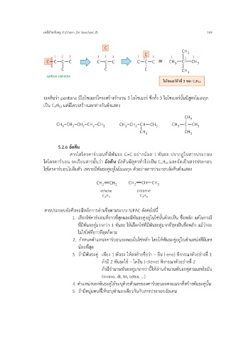 ไฮโดรคาร์บอนไม่อิ่มตัว เพราะมีพันธะคู่อยู่ในโมเลกุล ตัวอย่างสารประกอบอัลคีนดังแสดง