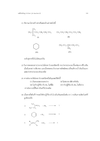 12) ในการทดสอบสารประกอบไฮโดรคาร์บอนชนิดหนึ่ง พบว่าสารประกอบนี้จะฟอกจางสีโบรมีน