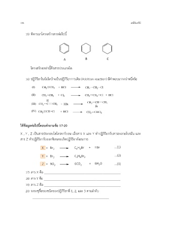 X , Y , Z เป็นสารประกอบไฮโดรคาร์บอน เมื่อสาร X และ Y ทำปฏิกิริยากับสารละลายโบรมีน และ