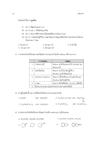2) การทดสอบในข้อใดเหมาะสมที่สุดในการระบุว่าสารใดเป็น Alkene หรือ Alcohol