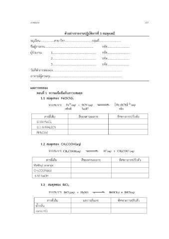 ตัวอย่างรายงานปฏิบัติการที่ 1 สมดุลเคม ี